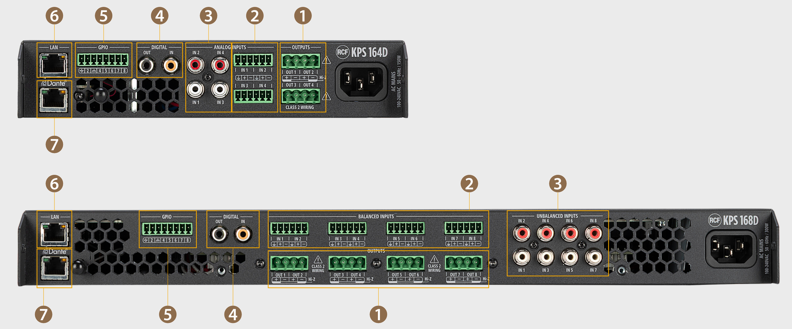 KPSアンプの末尾 "D" モデルはAudinate Dante AoIPネットワークに対応しています。