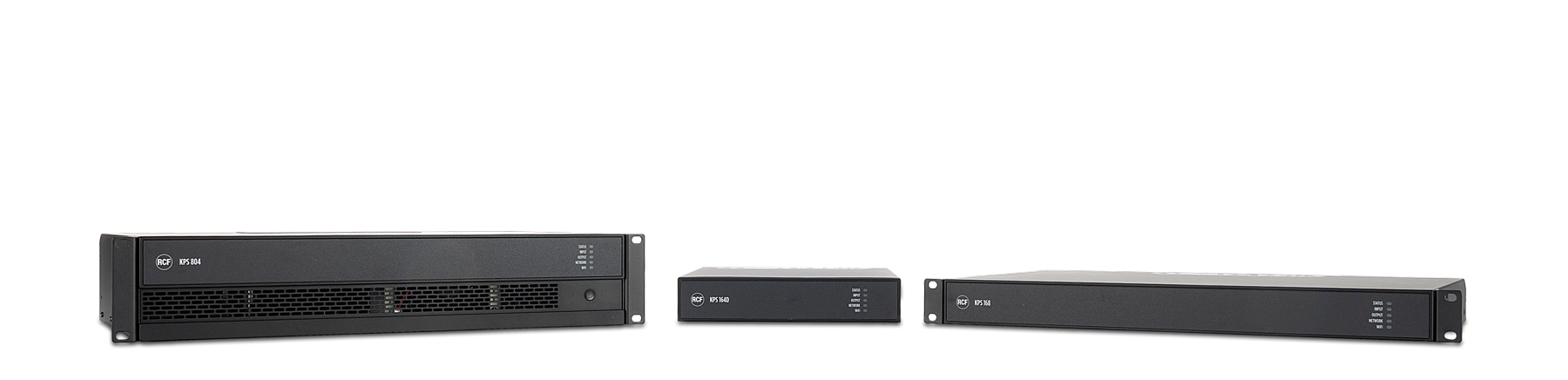 KPSの100番代モデル(KPS162 / KPS162D / KPS164 / KPS164D / KPS168 / KPS168D)は、市場を牽引する電力密度を誇り、4つの独立した160 W RMSチャンネルをコンパクトな1Uハーフラック幅に収めています。スマートな電力共有設計により、チャンネルペア間で最大300 Wまで電力を再分配でき、ブリッジモードを使用したりチャンネル数を犠牲にすることなく、出力間での非対称な電力配分が可能です。これにより、RCF製スピーカー駆動時のヘッドルーム最適化に最適な柔軟性を実現しています。