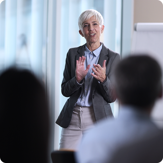 | 聴衆とのエンゲージメントが向上 通常の会話のような自然な発声で オーディエンスとのエンゲージメントを高めます。 |