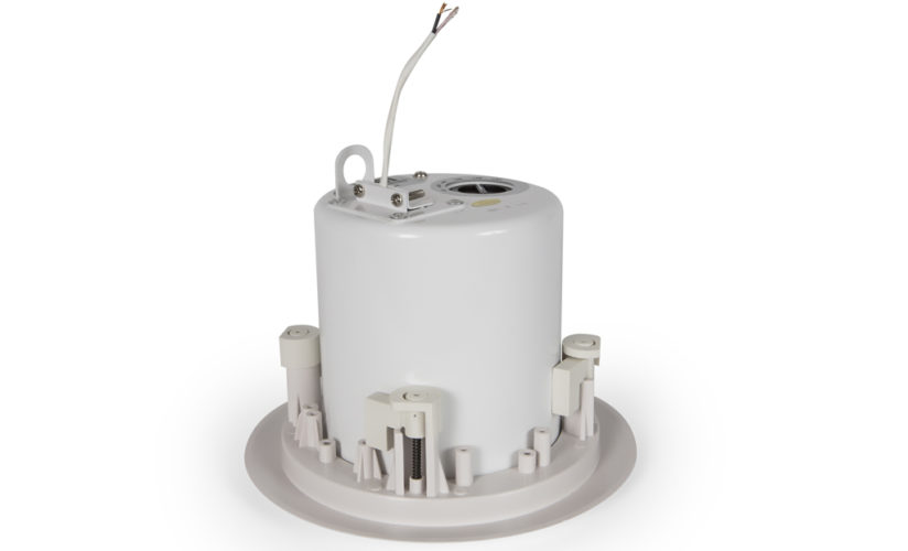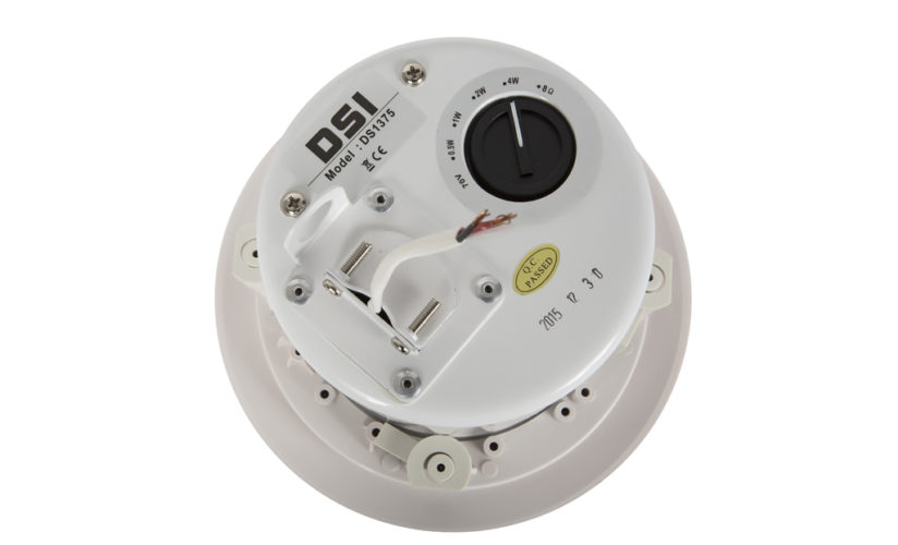 DS1375は、5インチ直径スピーカーを搭載したモデルです。コンパクトな筐体には防炎性の吸音材が内蔵されており、定在波や金属共振を防ぎます。吸音天井タイルやドライウォール天井への迅速かつ容易な設置を目的に設計されており、さらに設置時には操作部が見えないクリーンな外観を実現しています。均一な音の拡散特性を持つ本製品は、上向きスピーカーの使用が困難な環境における、ページングやBGM、サウンドマスキングスピーカーとして最適です。
